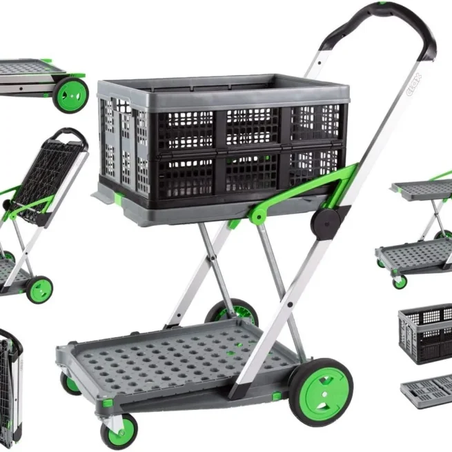 🛒CLAX® Multipurpose Folding Shopping Cart With Storage Basket😍