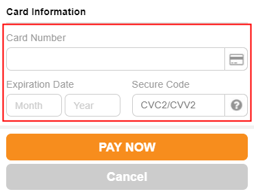 If you checkout with a Debit / Credit Card, just enter your * Card Number* Expiration Date, and * Secure Code.