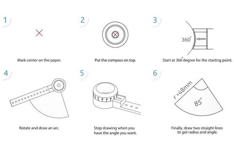 🖊 Easy to Use: When you use this multifunction drawing tool, you just need to put the compass on the center of the paper, it supports 360 degrees rotation, so you could rotate the ruler to a different direction, and paint with a stylish pattern with its multiple pattern holes.