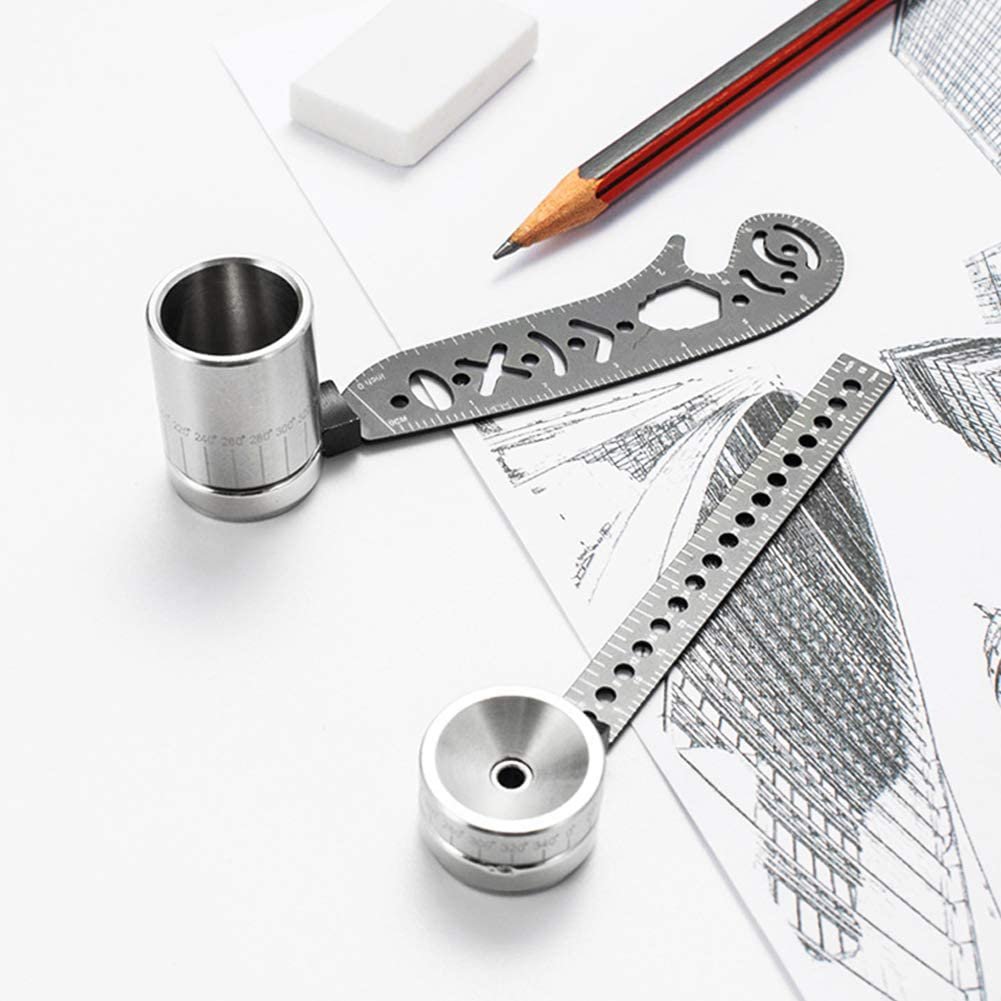 🖊 Unique Design: This multi-function drawing Tool is an innovative pocket-sized drawing tool. A compass and a protractor all in one. Designed to be portable stationery, with this tool in hand, you will be well-equipped to draw high-precision arcs and patterns effortlessly.