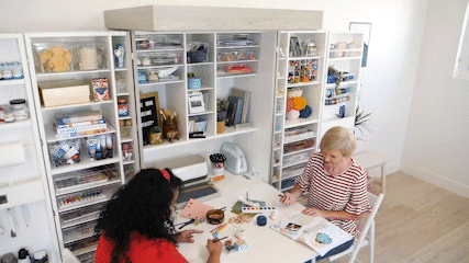 Your mobile “create room” hides-away into a beautiful armoire, saving space.