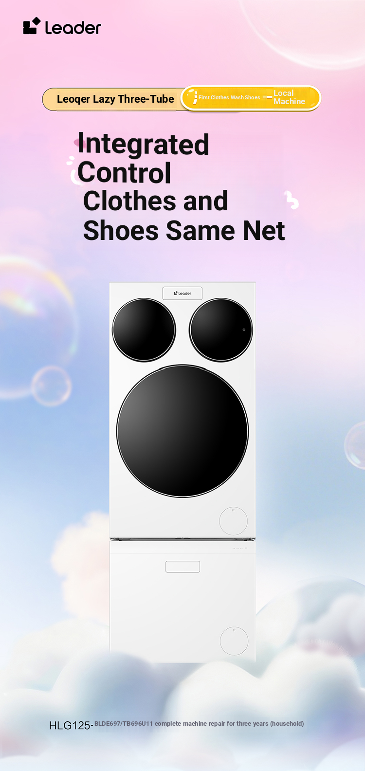 Haier Leader Three-Compartment Automatic Washing Machine and Shoe Washer Set, Three-Drum Household Front-Loading Washing Machine ProMax