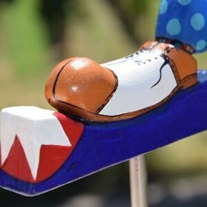 Complete with his steel stake on which he orients following the direction of the wind is ready to take up residence in the garden and start flying!